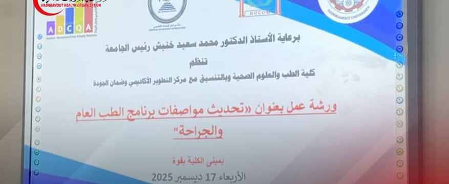 تشارك في ورشة العمل الخاصة بتحديث برنامج الطب العام والجراحة التابعة لجامعة حضرموت