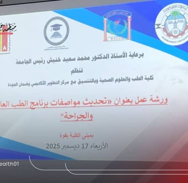 . هدفت الورشة إلى مراجعة وتحديث رؤية ورسالة ومخرجات التعليم للبرنامج، بما يسهم في تعزيز الجودة والاعتماد الأكاديمي، ومواءمة مخرجات التعليم الطبي مع الاحتياجات الصحية للمجتمع، بما يدعم استدامة التطوير في القطاع الصحي